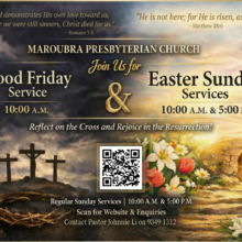 Welcome to Maroubra Presbyterian Church. We are a Reformed Presbyterian church in Maroubra Junction, Sydney. We worship God each Lord’s Day at 10:00 am and 5:00 pm, with our ministry centred on the faithful preaching and teaching of Holy Scripture. We hold to the Westminster Confession of Faith as our doctrinal standard, and we seek to make Christ known through worship, prayer, fellowship, and the ministry of the Word.